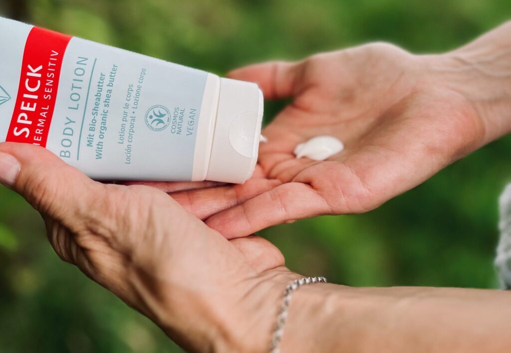Speick macht sich die Eigenschaften der Algenextrakte in der Thermal Sensitiv Serie zu eigen. Das Besondere: die Verbindung von Algenextrakten mit kieselsäurehaltigem heimischen Thermalwasser aus Schlangenbad. In Kombination mit weiteren Wirkstoffen entsteht eine Pflegelinie, die auf ausgleichende und beruhigende Rezepturen setzt – für empfindliche Haut, die auf Umwelteinflüsse sensibel reagiert.